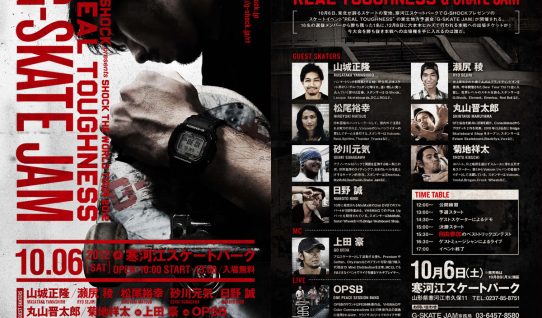 10月6日に山形県の寒河江スケートパークにて、12月8日に六本木ヒルズで開催されるREAL TOUGHNESSの地方予選であるG-SKATE JAMが開催される。 今大会の優勝…
