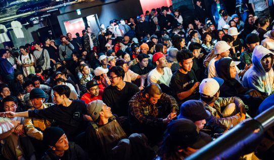 会場は来場者でパンパン。身動きできないほど大盛況だったadidas SkateboardingとEvisenによるコラボコレクションのローンチパーティ。