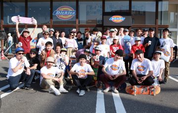 4月21日(土)にDickiesの新店舗が東静岡にオープン。それを記念し、午前中はCheesによる初心者向けスクール、午後にはライダーたちが駆けつけデモとファンセッションを開催。デモでは吉岡賢人がのっけから会場を沸かし、職人肌な竹井勇磨がスピーディにミニランプを駆け巡る。そして最年少の星野大喜がスキルフルに魅せたかと思えば、ベテランの伊藤慎一がビッグトリックで締めくくる“これぞデモ”という流れのまま一般参加によるファンセッションへ。宮島大介のMCとカルロスひろしのDJのもと、Dickiesアイテム引き換えチケットをゲットするために白熱したセッションが繰り広げられた。そしてこのイベントの模様は近日映像で公開予定。