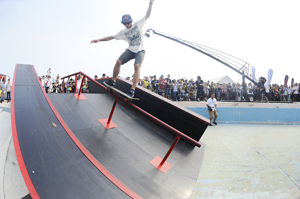 他にも、ハンドレールにレッジというREAL TOUGHNESSならではのセクションを用いたデモも開催。