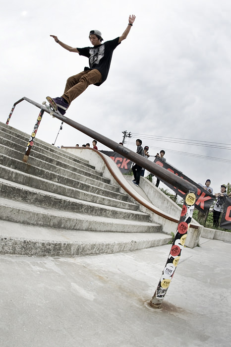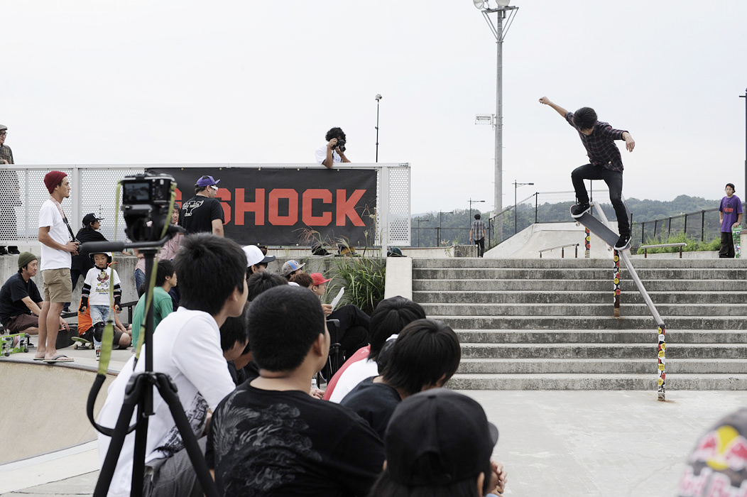 東北地区を中心に16名のスケーターが出場し、4名×4ヒートの予選を勝ち抜いた4名のスケーターが決勝でハンドレールとステアでスキルを競い合った。