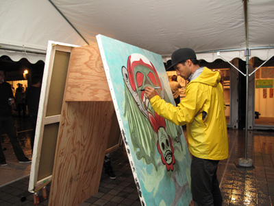 あいにくの雨にも関わらず、多くの来場者がドリンクを片手にアートを楽しんでいた。