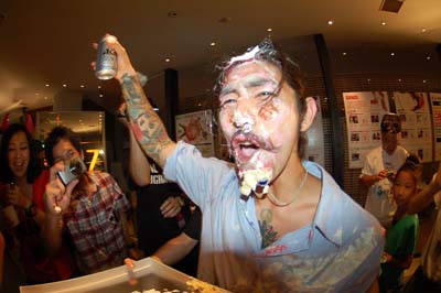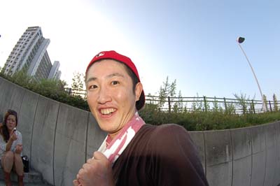 DC、LRGなどの看板を背負う、優勝者の山城正隆