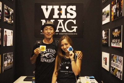 我らがVHSMAGもブースを設置させていただき、これまで展開した各企画のパネルの展示とステッカーの配布を実施。多くのスケーターが立ち寄り、パネルを眺めてくれました。