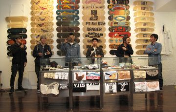 今回のエキシビジョンはBEAMS T HARAJUKU店内にWTS Skateshopというポップアップスケートショップを出店するというだけあって、会場の壁一面を使い7Stars Design、平野太呂、竹内俊太郎、田口 悟、山口幸士、村岡洋樹という6名のアーティストがアートワークを手がけた1点もののスケートデッキが展示・販売。