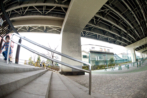 この日も大竹宏二は赤い車に乗って現れました。彼は、いつもこの車に乗ってやってくる。そして撮影する前には決まって赤い車に独り乗り込み、しばらくシートに座ったり寝たりしているのです。どうだろう、この挙動? と最初は首をかしげていた自分でしたが、彼がメイクするビッグトリックを目にするたびに、その行動は一種の瞑想であると気づいたのでした。赤いカプセルで覚醒したコウジが超絶トリックを決めるという、何やらSFチックな人物、それが大竹宏二なのです。