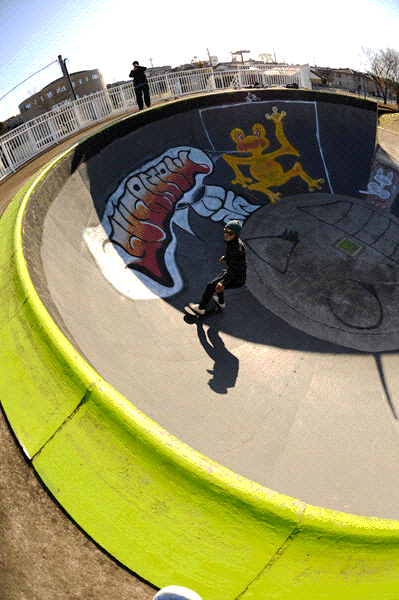 初めて会った時は、大先輩のお子さんだった。今では「どうもご無沙汰しております、ご苦労様です」と敬語を使ってしまいそうなほどの貫禄である。しかもそれは、もはや見た目だけの話ではなくなった。路面がラフで何が起こるかわからないヴィンテージボウルでこのトリックとは恐れいった。巨大な鼠の快進撃が始まる。いけー! カピー!