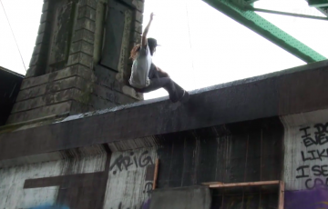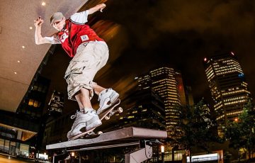 力の抜けたスタイルで大阪のクラシックスポットを最大限に活用。どんなレッジスポットに行ってもクリップを量産可能な増田真也。