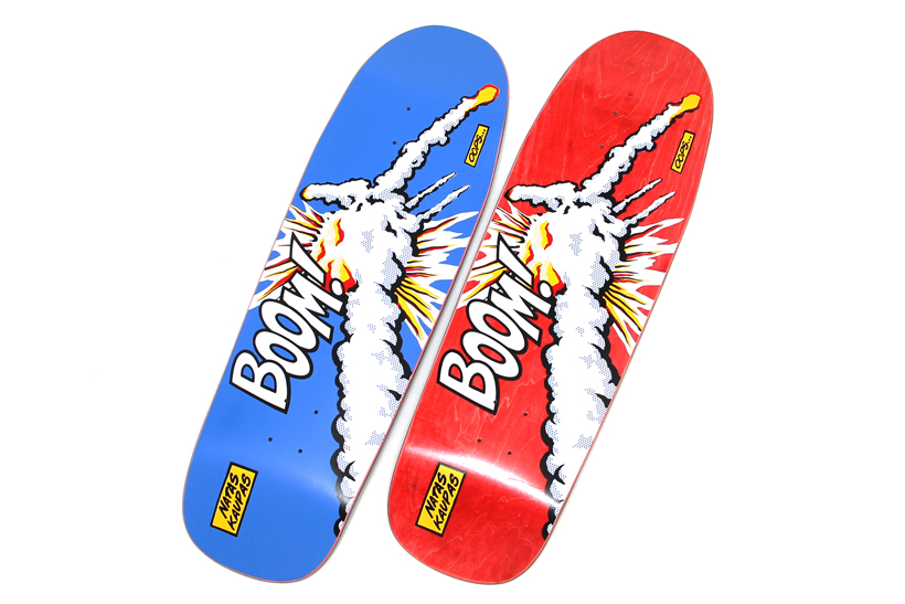 ナタス・カウパスのシグネチャーモデル。グラフィックはスペースシャトルのチャレンジャー号。写真左から、Natas Challenger Blue(9.8×32.2)、Red(9.8×32.2)。ともに¥14,040