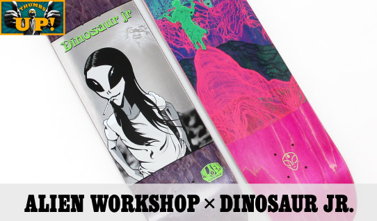 これまでにさまざまな作品に楽曲提供を行いスケーターに馴染みの深いオルタナバンドDinosaur Jr.とAlien Workshopの最新コラボ。