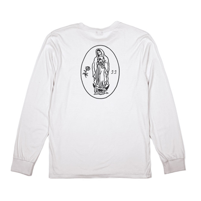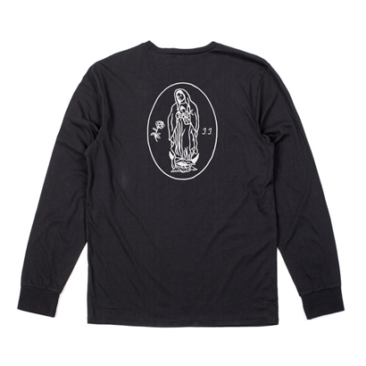 マリア様のアートワークをバックにプリント。Madre JJE L/S Prem Tee 各色ともに¥7,560