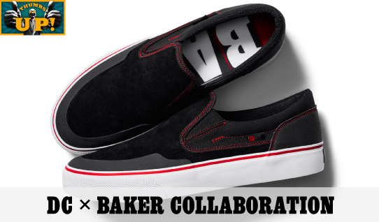 おなじみのフォントを用いたDC ShoesのロゴプリントやBakerのイメージカラーであるブラック&レッドを取り入れたアイテムは両ブランドのファンならずとも即ゲットです。
