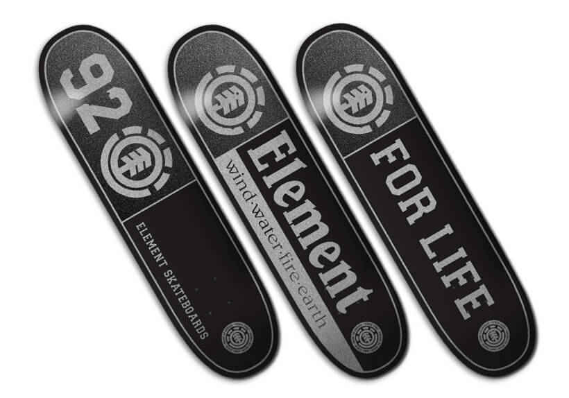 1992年からつねに進化し続けてきたElementのアニバーサリーイヤーを飾るアイテムは、重厚な配色のデッキとリフレクティブプリントを採用したアパレル類。