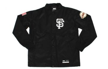フロントの左胸にGiantsのロゴ、バックにFTCSFCのアーチロゴを配置したコーチジャケット。両腕のワッペンもGood。Nylon Coach Jacket ¥24,840