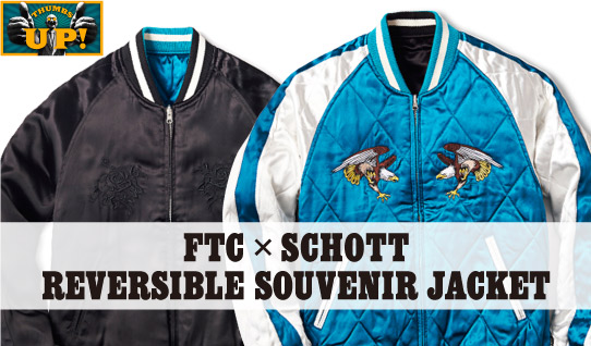 フロントサイドはブラック、リバーシブルサイドのはブルーを基調としたデザイン。FTC × SchottのReversible Souvenir Jacket ¥39,960