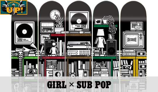 音楽とともにあるライフスタイルの部屋をモチーフにしたグラフィックが特徴のデッキにはSub Pop所属アーティストの音源を収録したソノシートが付属。スケートとは切っても切り離せない良質な音楽とのグッドコラボ!!