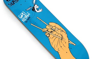 ・宮城 豪の最後のシグネチャーモデル(8.125×31.75)。ハエが箸から離れているのは、プロやアマという縛りから解放された状態を表現している。 ¥11,880