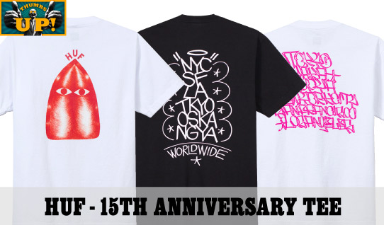 SFのセレクトショップとしてスタートしたHUFの設立15周年を記念したTシャツが登場。
