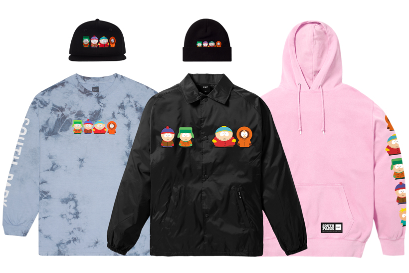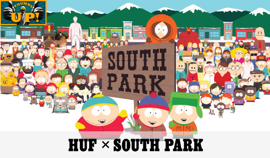 ブラックジョークや時事ネタを取り入れたコメディアニメのSOUTH PARKとHUFによるコラボコレクションがHUFの直営店とオンラインストアにて発売中。
