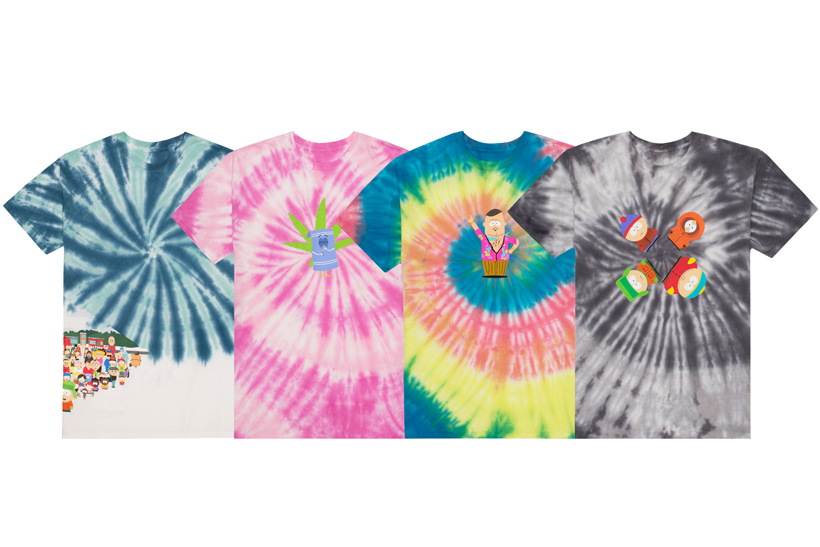 写真左から、SP Opening S/S Tee、SP Towelie Tie Dye S/S Tee、SP Big Gay Al Tie Dye S/S Tee、SP Trippy Tie Dye S/S Tee。すべて¥6,480