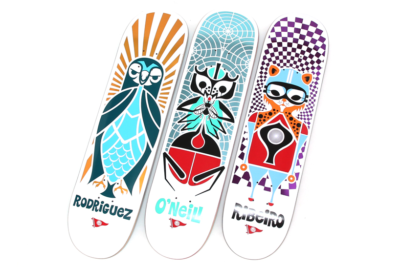 写真左から、ポール・ロドリゲス(8×31.75インチ)、シェーン・オニール(8×31.75インチ)、カルロス・リベイロ(7.8×31.625インチ)。すべて¥11,880