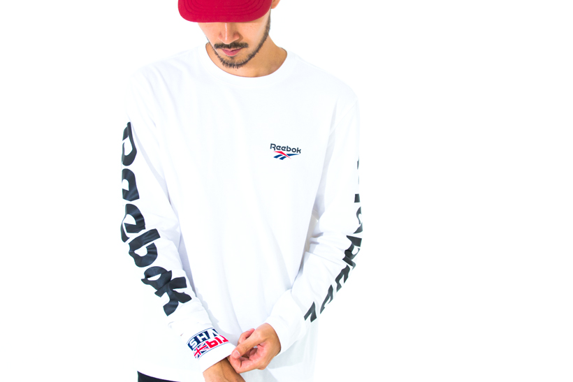 両袖とバックにReebokとTee19vhsのプリントを施したロングスリーブTシャツ。T19 VHS Vector Long Sleeve T Shirts ¥6,469