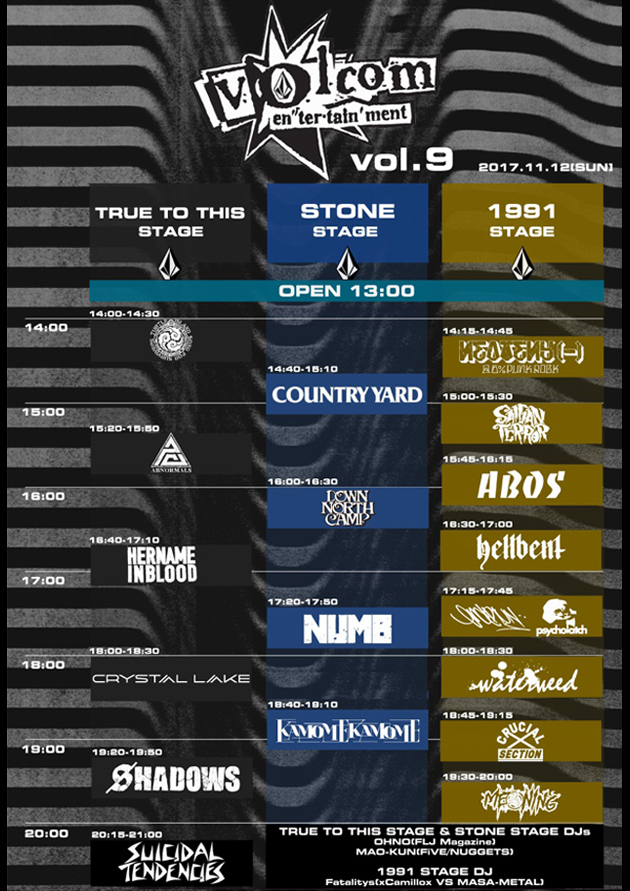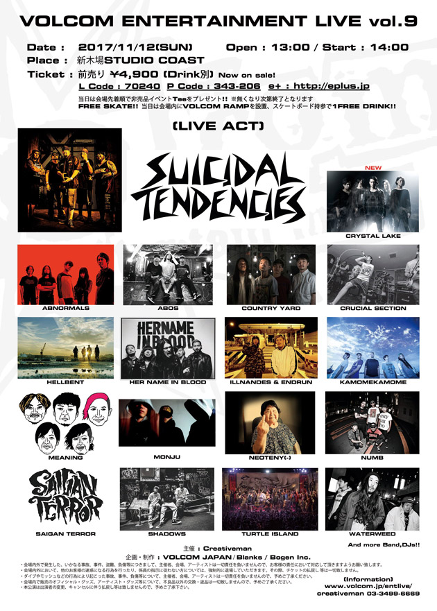 なお、11月12日(日)に新木場スタジオコーストで開催されるVolcom Entertainment Live Vol. 9ではSuicidal Tendenciesが出演。