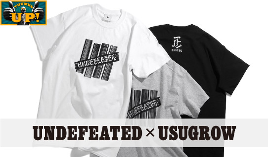 フロントに大きくUSUGROWデザインのファイブストライクス、バックの襟元に正のロゴをプリントしたTシャツ。UNDEFEATED USUGROW 5 STRIKES S/SL TEE ¥6,480