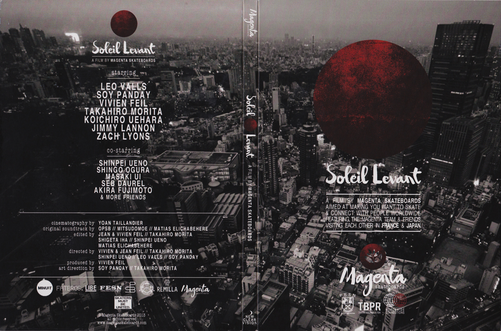 そんなFESNとTBPRがフランス発のスケートカンパニーと繋がり、完成したのが本作。FESNの森田貴宏がパリでMinuitのヨアン・タイランジーと撮り下ろしたフルパートをはじめ、TBPRの上野伸平が編集したMagenta唯一の日本人ライダー上原耕一郎のフルパート、日本の伝統が散りばめられたザック・ライオンズ&ジミー・レイノンのパートなど見どころ盛りだくさんです。また、各パートのタイトルの意味を考えて探ってみるのもおもしろいでしょう。“rising east shining west”、“philharmony”、“K297 (300a)”、“self identity”、“new clear vision”、“mind connect”……すべてのタイトルに意味やコンセプトがあるのです。