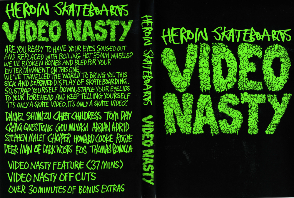 UK発、現在はLAに拠点を置くHeroinからついにリリースされた話題の最新作『Video Nasty』。なんせHeroinは日本人スケーターが3名(チョッパー、ハマジ、宮城 豪)も在籍しているという、珍しいカンパニーなのです。本作の注目はやはりチェット・チルドレスやダニエル・シミズといったアメリカ人スケーターではなく、長年Heroinに在籍する大阪のチョッパーとFESN『overground broadcasting』で世界中の注目を浴びたドラボンこと宮城 豪のフルパートでしょう。