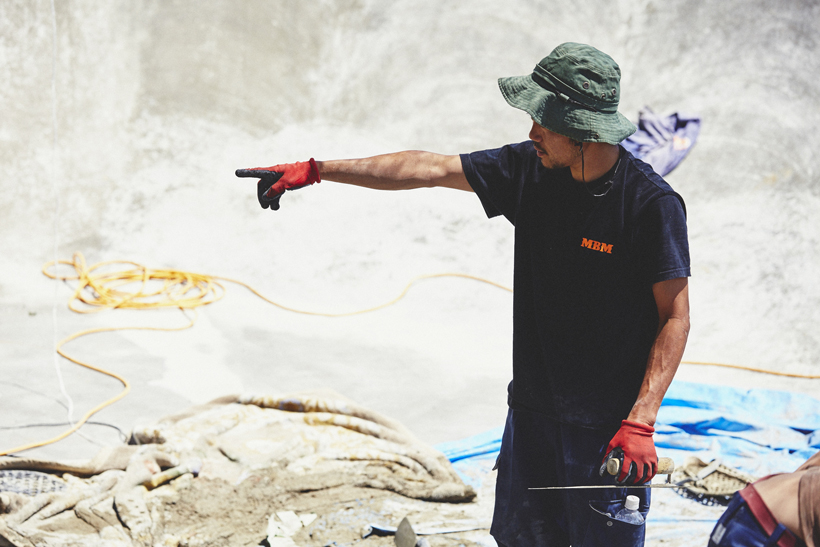 木村将人(以下K): 簡単に言うとスケーターの仕事と活動をサポートするプロジェクトなんですけど、ぶっちゃけ雄士を見ていて気づいたんですよ。昔にストリートにDIYでコンクリートを盛っていた話をしていましたけど、彼らはもうド素人でしかなかった。でもそれがすごく好きでやっていたんだよね。スケートもしたい、仕事もしたい、コンクリートで作ってもみたい、でもスケートの撮影もしたい。そんな雄士を昔から見てきたんで、やりたいようにやらせていました。5年間あまりスケートをしていなかったと言っていましたけど、雄士は仕事にのめり込んでいたんです。そのタイミングでオリンピックの影響もあってかパークビルド業が始まった。そこで土建屋業とスケート、雄士の人生のすべてがリンクした。そんな彼を見ていると「いい人生を送っているな」と思うわけ。20年前にAXISを始めた頃もスケーターをサポートする気持ちはあったけど、商売が厳しくてうまくいかなかった。でも今ならスケートが好きな子たちをサポートできる。今のMBMなら、こういう人間、第2の雄士を作ることができるんじゃないかと思ったんです。