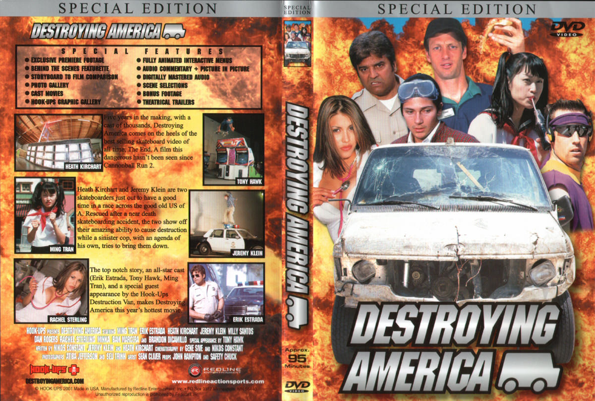 今週はStrushの新作DVDのレビューがくると思っている人がたくさんいたかと思うところですが、期待を大きく裏切って過去の名作を振り返ってみます!! 何気に2000年代リリースということに驚かされてしまったこのジェレミー・クライン率いるオタクはちゃめちゃブランドHook Upsの『Destroying America』。 タイトル通りですね。オープニングからジェレミーの性癖というか何と言うかが満載です。ツアー映像ではJackassで有名になる前のバム・マージェラとブランドン・ディカミリオや、まさかのマーク・ゴンザレスも同行していて驚きです。しかしデモの様子はかなりなものですね。ツアー車を使用したセクションにはいろいろと感動を覚えますね。そしてヒース・カーチャートとジェレミーのパートはBirdhouseの名作『The End』の続編的な作りになっています。この時代にしては相当規模のデカい撮影ですよね。車燃やしたりタコス屋、植木屋に突っ込んだりとかとか。ダン・ロジャースとインラインスケーターに扮したジェレミーのパートなどくだらないこと山の如しで、極めつけはトニー・ホークまで悪ふざけに付き合ってくれていてピザ屋に扮したり、マジハンパないです。完璧ジェレミー・クラインの趣味の映像作品となっています。そして結構尺がある割にスケート映像は極小で、最初の方のツアーくらいしかありません。でもそのツアー映像だけでもかなり楽しめると思いますので、秋の夜長にどうぞ!!