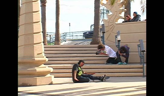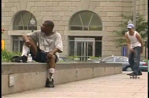 この当時Santa Cruzに在籍していたトム・ノックスは、ショーツスケートの代名詞的存在。このビデオパートもすべてショーツで撮影に望んでますね。これはもう暑さ対策というよりスタイ…