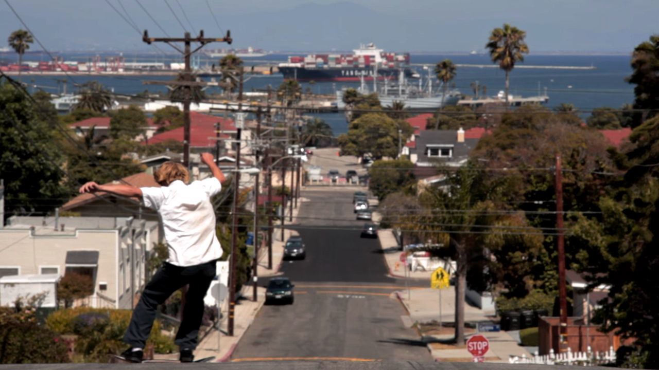 サンペドロの景観をバックに、ストリートを滑り抜ける