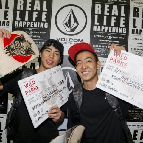 VolcomとBerricsの共同主催のコンテスト“Wild In The Parks”にて池田大亮がジュニアクラスで優勝、オープンクラスでは堀米雄斗が2位のスーパー快挙を達成。おそるべしbuzz boyz。