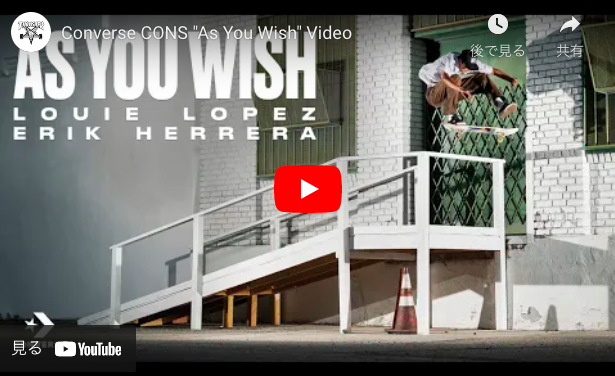 NEWS ルイロペSOTYに王手!? ──CONVERSE CONS - AS YOU WISH 2022.12.06 Converse Consの最新エディット。 トリを飾るルイ・ロペスの超絶パートでSOTYに王手をかける。