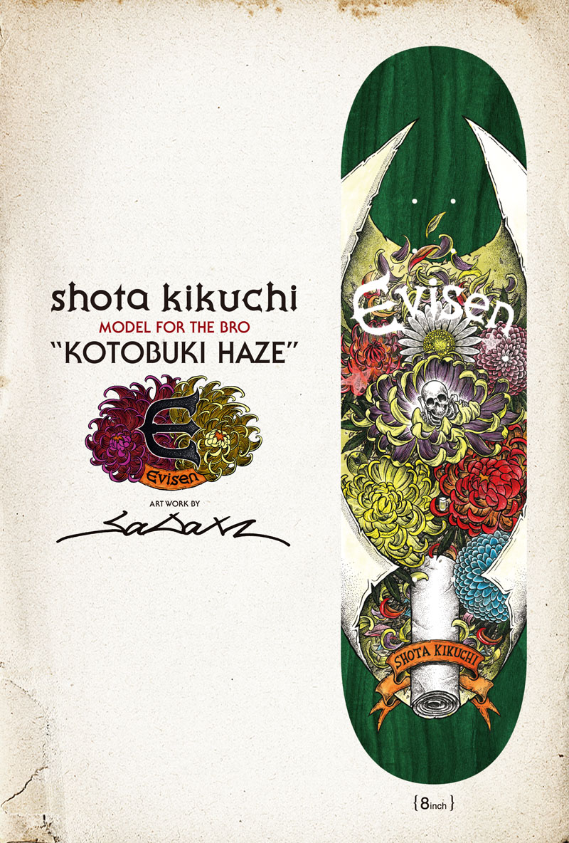 NEWS Evisenから初のゲストボードとなる菊地祥太のモデルが登場。 グラフ… ──EVISEN - SHOTA KIKUCHI MODEL FOR THE BRO 2012.12.03 Evisenから初のゲストボードとなる菊地祥太のモデルが登場。 グラフィックを担当したのは仙台出身のアーティスト、SADAM。 “兄弟へ、おめでたい花束のプロボードを贈る”という大切な想いが込められた菊地祥太モデルをチェック。