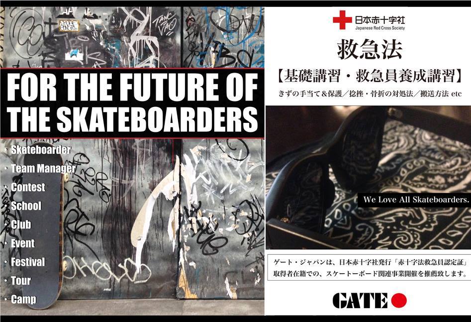 2006年からさまざまな方法で日本のスケートシーンの発展に尽力してきたGATEより、日本赤十字社が発行する「赤十字法救急員認定書」を所得することができる救急法の受講を推奨する動画が登場。