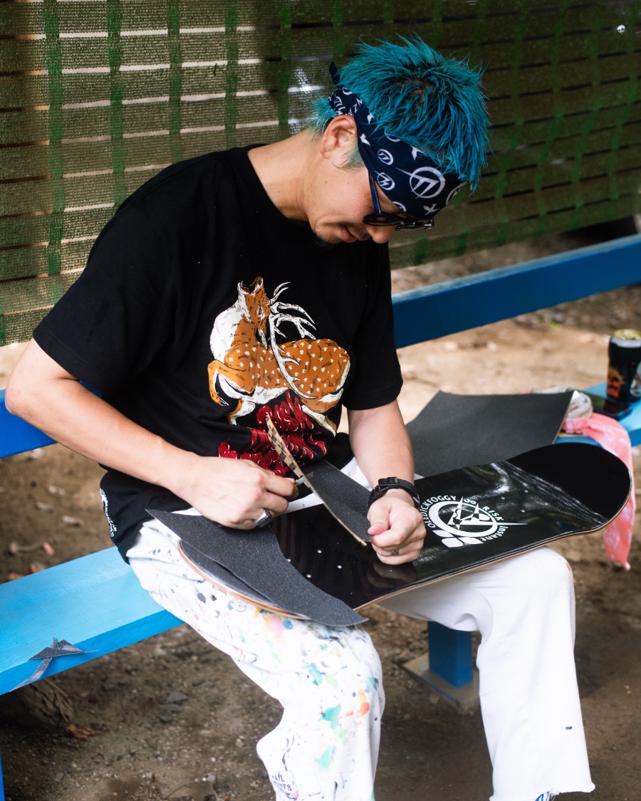 NEWS 30周年記念トリプルコラボ ──OLEDICKFOGGY × RISK × INSTANT 2025.09.21 OLEDICKFOGGYの伊藤(Vo)、instantの本間、RISKのHigo-Vicious、Hirottonが集結。 パークでセッションをしながらトリプルネームの発売を祝福。