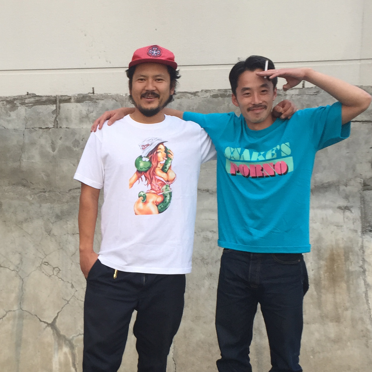ちなみにグラフィックを手がけたのは、日野 誠の元ルームメイトのケンジ・タナカ(写真向かって左)。社会の窓の風通しがグッド。