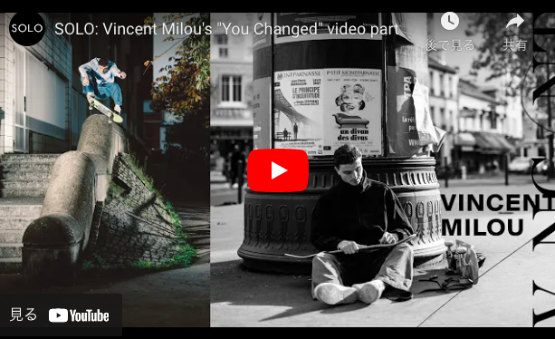 NEWS 新たな境地へ ──VINCENT MILOU - YOU CHANGED 2022.12.29 adidas Skateboarding加入後初となるヴィンセント・ミルーのパートがSoloより公開。 三本線を足元に携え、スケートキャリアの新章開始。