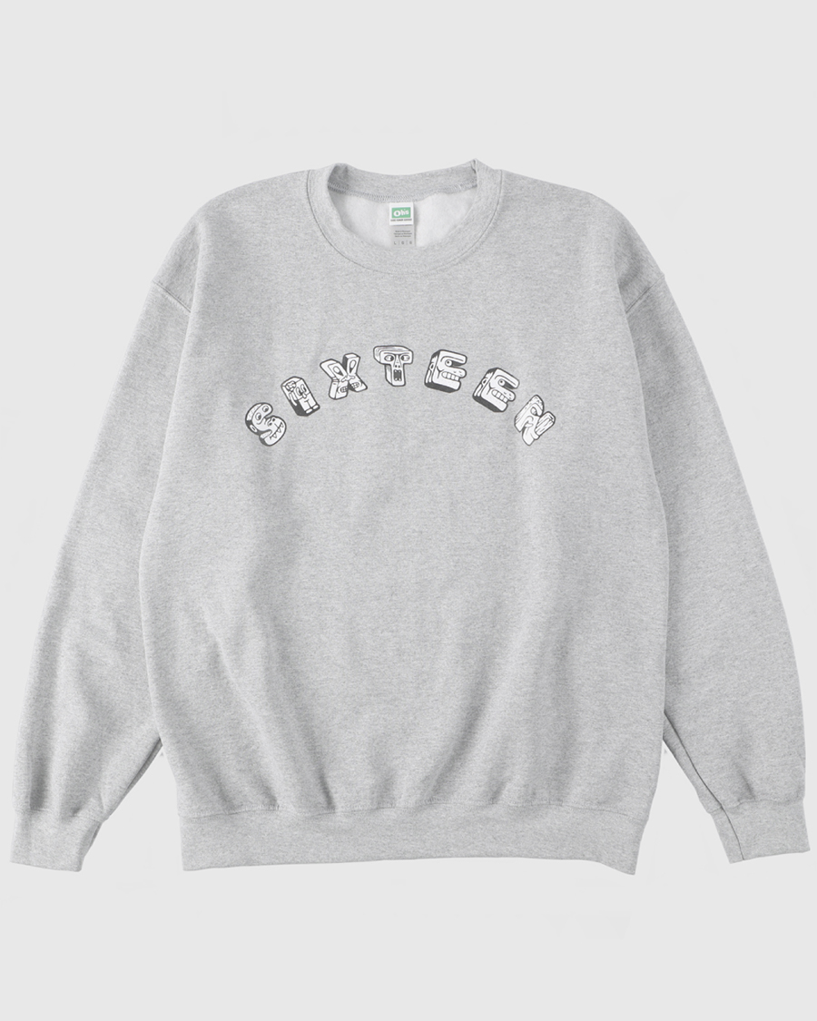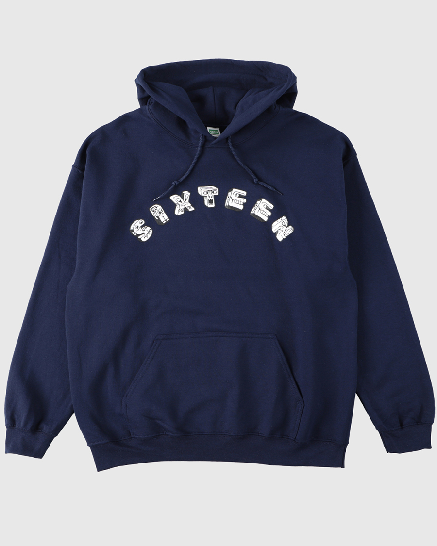 Sketchが描いたアルファベットモンスターをプリントした16 (Sixteen)別注フーディ&クルースウェット。
