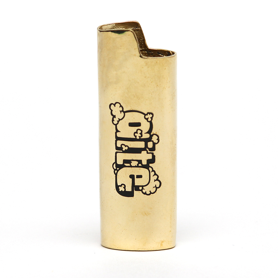 ゴールドのメッキにエンボスロゴが高級感あふれるBICのフリント式レギュラーサイズ用メタルライターケース。¥4,950