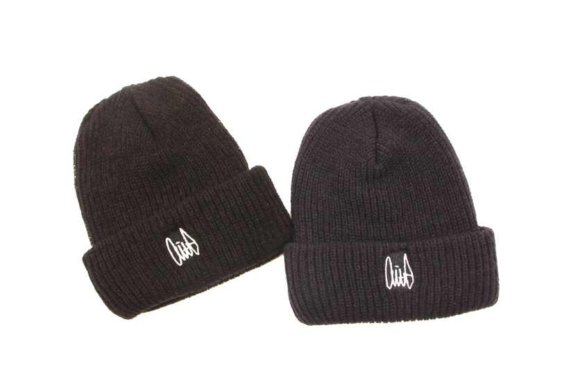 快適な被り心地がポイントのニット帽。ダークトーンのボディに刺しゅうが映える。各色ともに¥4,320
