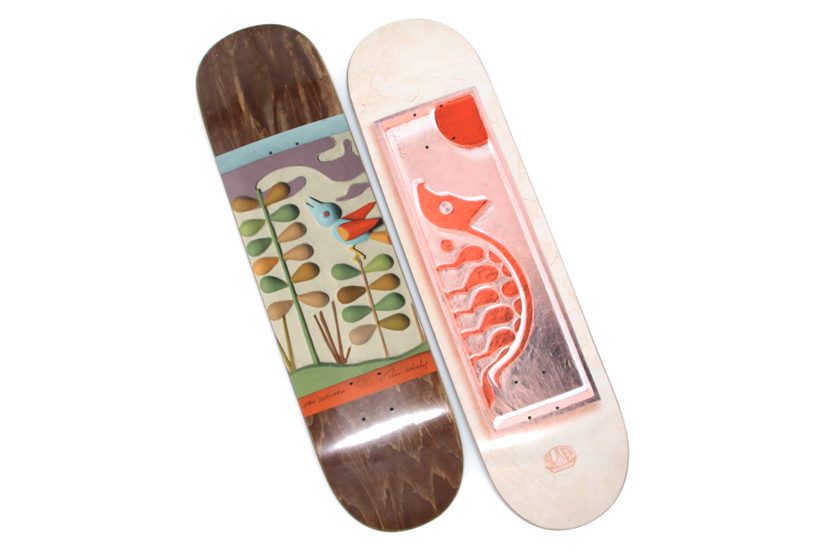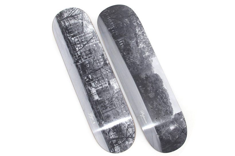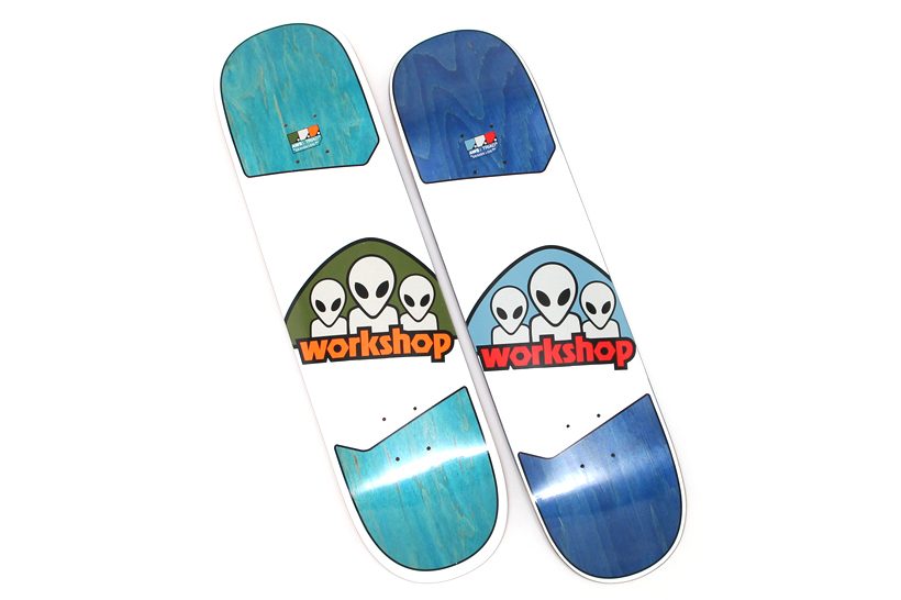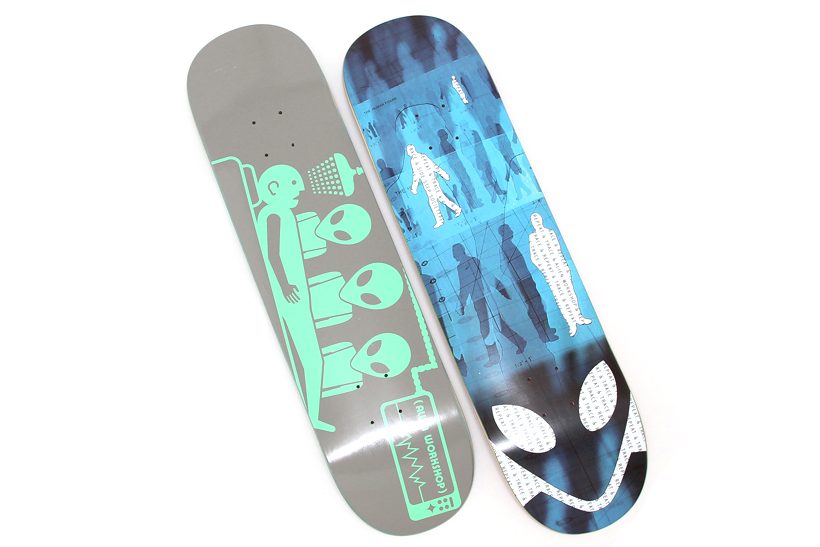 写真左から、Abduction Grey/Mint Green(8×31.625)、Trace Humans Blue(8.25×32.125)。ともに¥11,880
