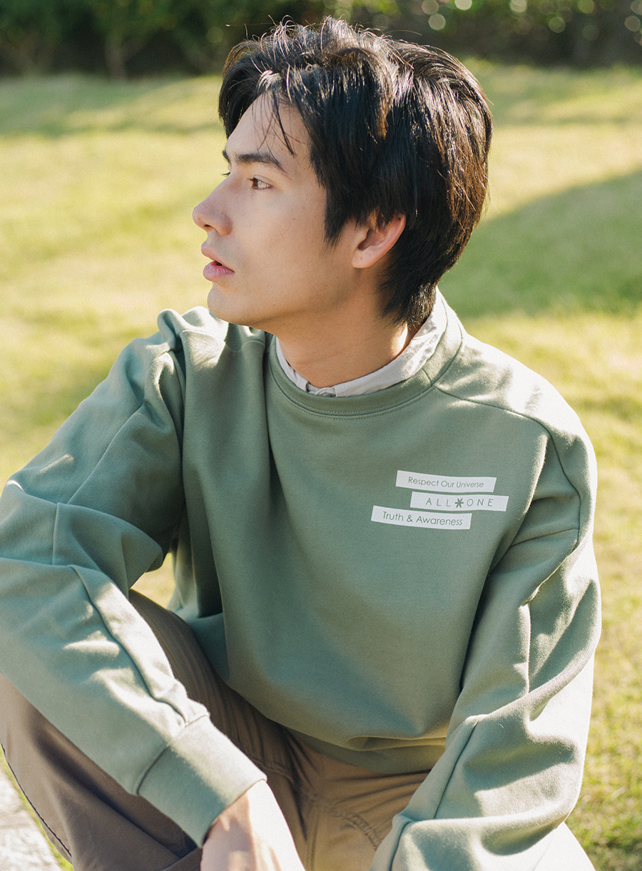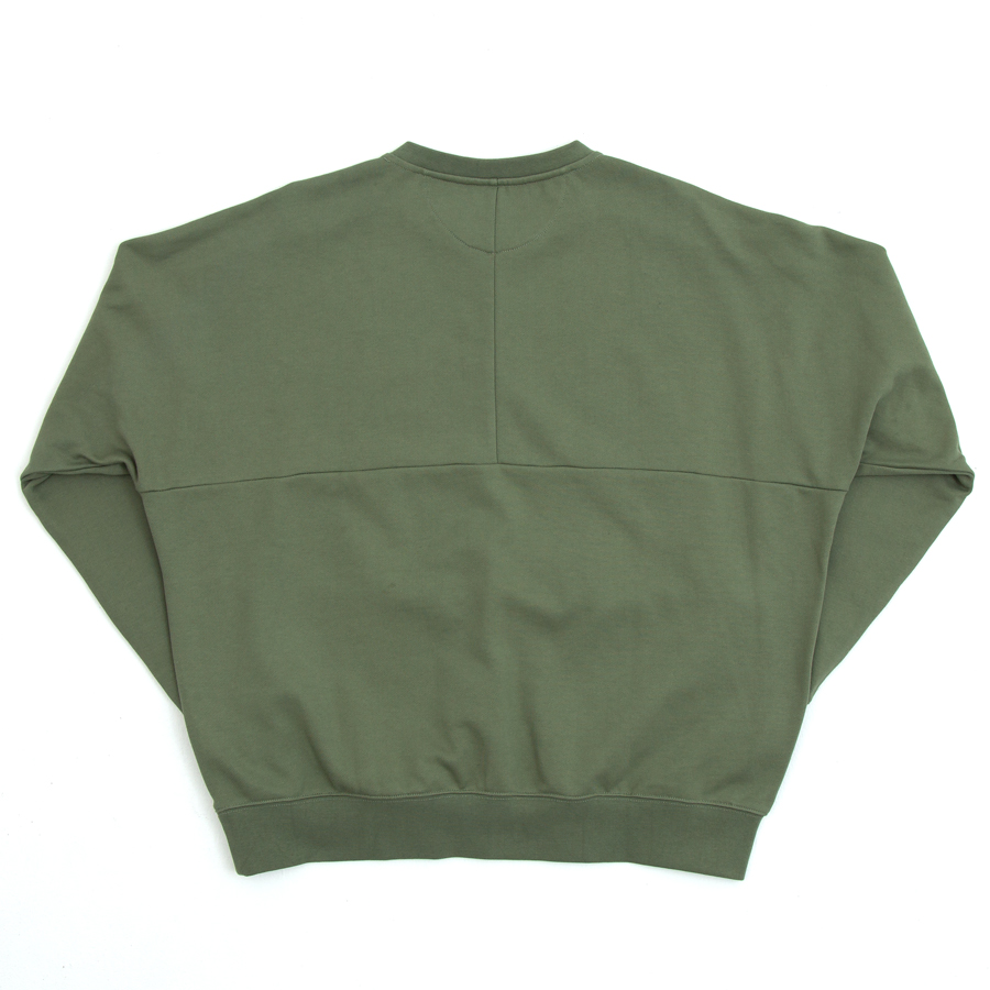 前身頃はセットインスリーブ、後身頃はラグランスリーブという切り替えを多用したボディのクルースウェット。左胸のボックスロゴが主張する。Box Print Wide Crew 各色ともに¥9,900