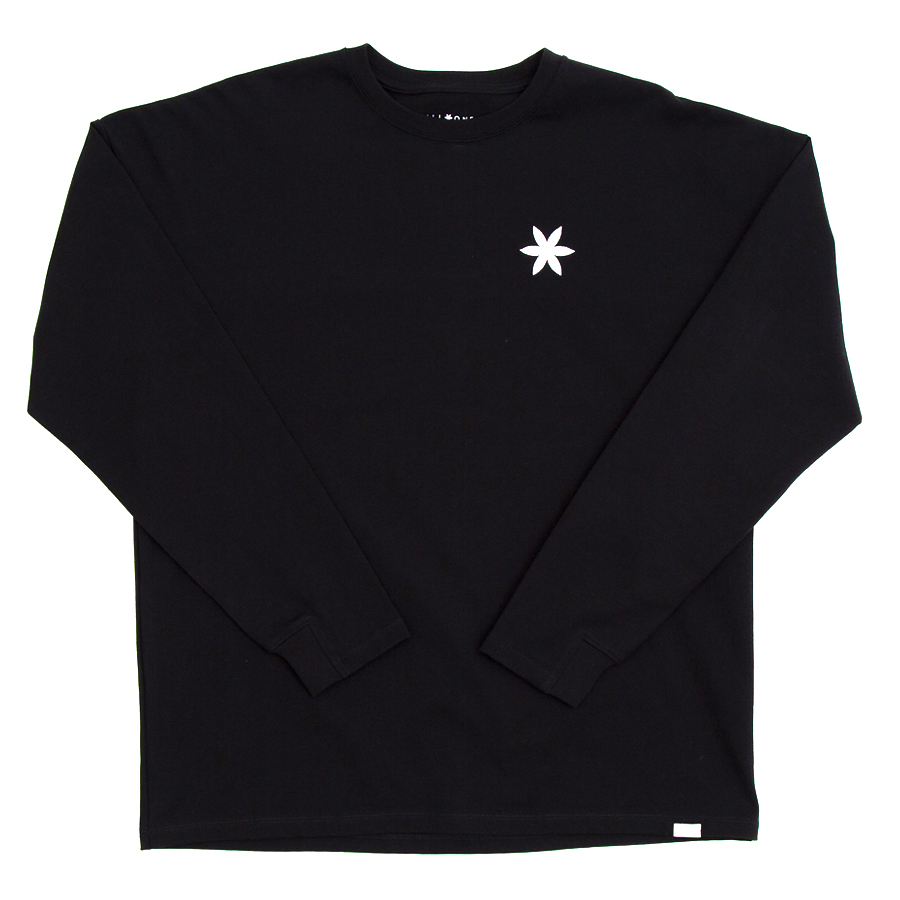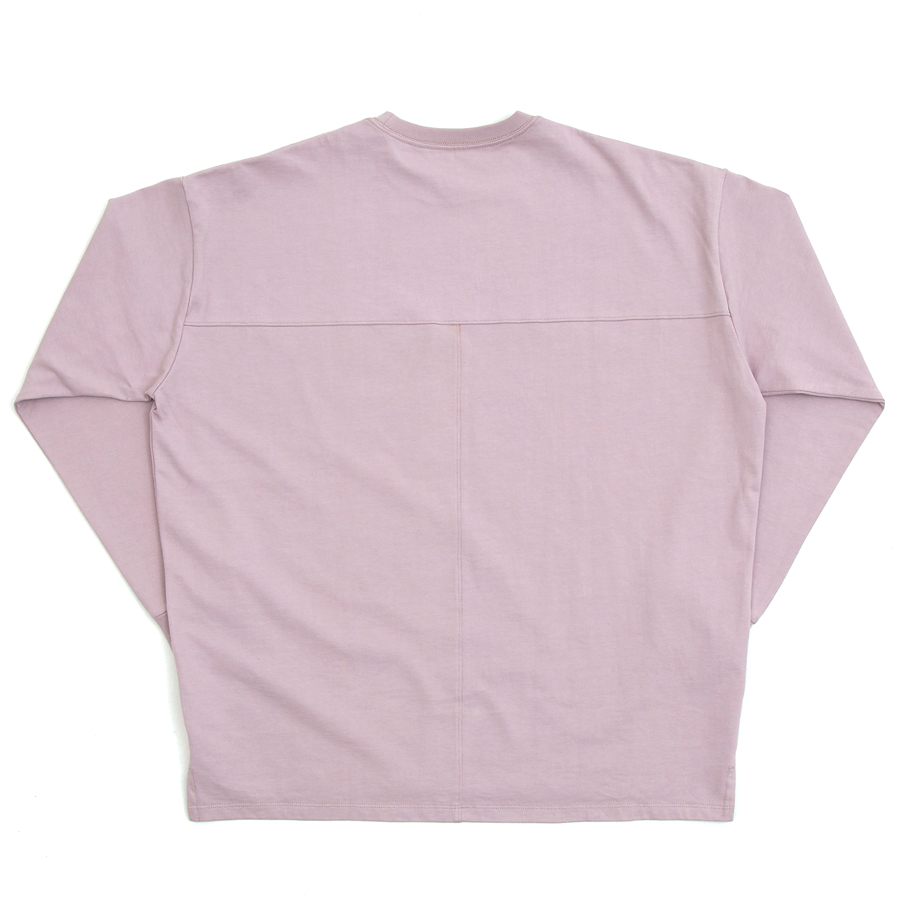 フライスリブの切り替えデザインを取り入れた袖が特徴的な1枚。バックの切り替え&巨大プリントも映える。Back Print Wide L/S Tee 各色すべて¥9,900