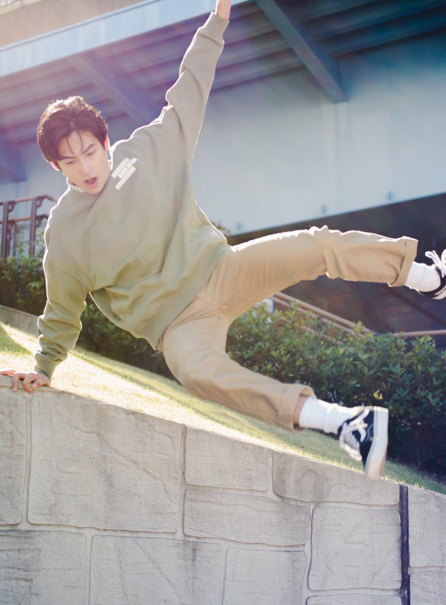 フロントにワンポイント、バックに大きくロゴプリントを施したクルースウェット。両脇にリブを用いることで着心地や動きやすさをアップ。Back Logo Wide Crew 各色ともに¥9,900