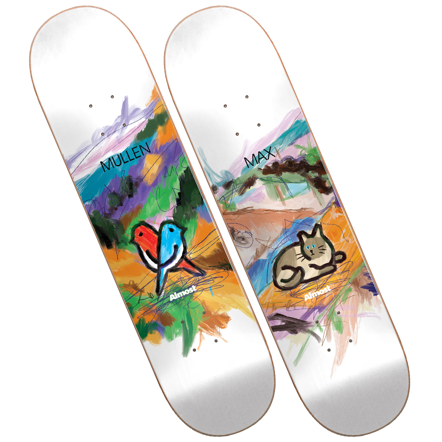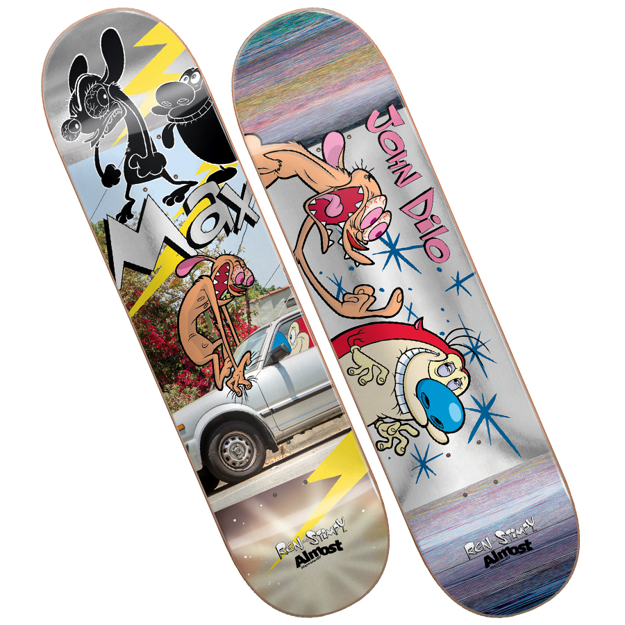 写真左から、Ren & Stimpy × Almost Skateboards R7のMax(8.25×32)、Dilo(8.125×31.7)。ともに¥11,000