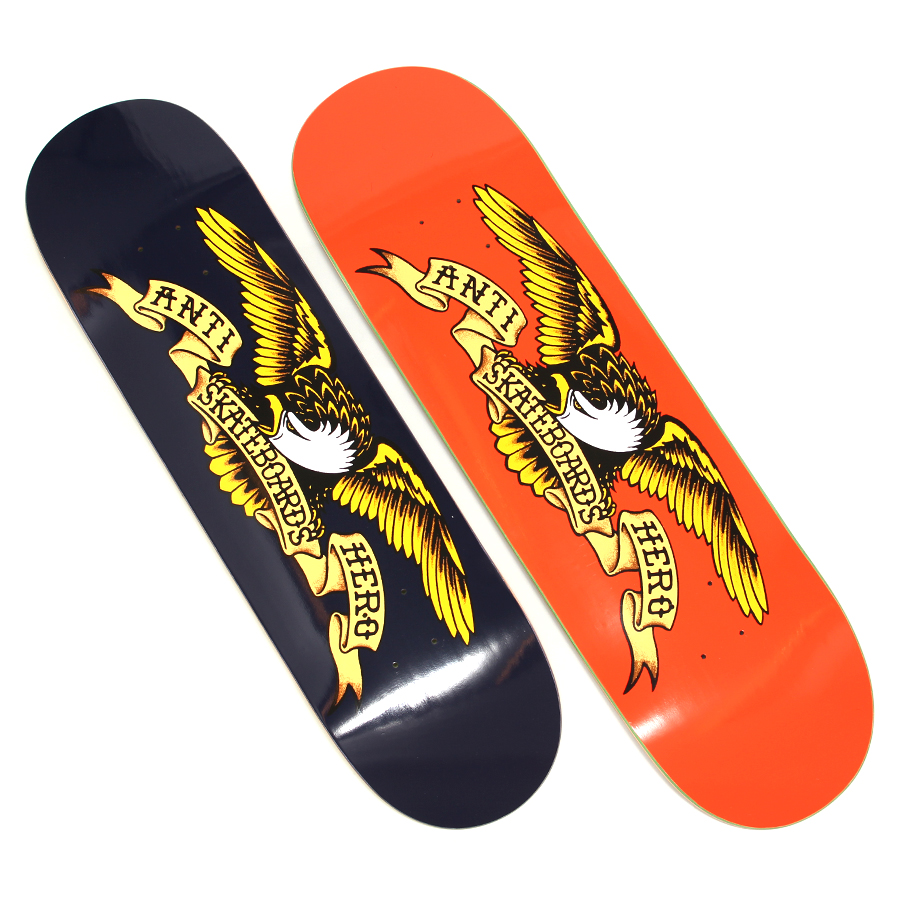 写真左から、 Classic Eagles Navy(8.5×31.8)、Classic Eagles Orange(9×33.25)。ともに¥11,000